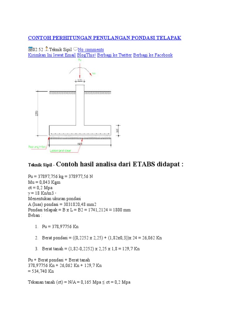 Oct 24, 2015 · perhitungan pondasi telapak.